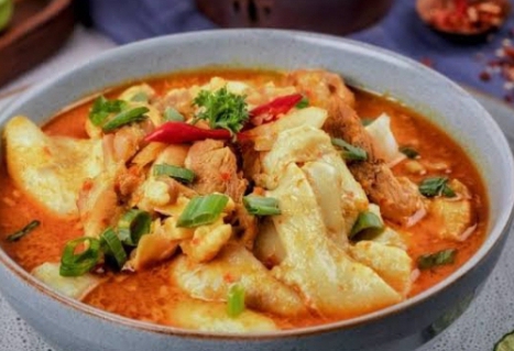 Meski namanya ‘sayur’, hidangan ini lebih mirip gulai berkuah kuning kental. Bahan utamanya adalah daging atau tetelan sapi.