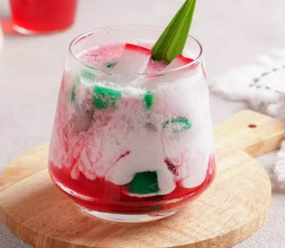 Minuman manis ini punya ciri khas adonan berlapis-lapis dan berwarna-warni yang terbuat dari tepung beras dan sagu aren.