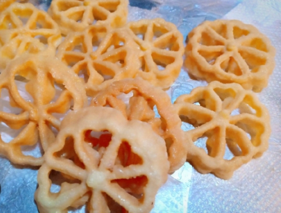 Camilan ini memiliki bentuk yang cantik dan rasa yang manis. Terbuat dari tepung, sagu mutiara dan santan, camilan ini menawarkan tekstur yang kenyal dan cita rasa yang manis.