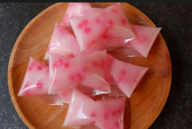 Kue Betawi ini juga terbuat dari sagu mutiara berwarna-warni di dalamnya serta dibungkus dengan rapi menggunakan plastik bening.